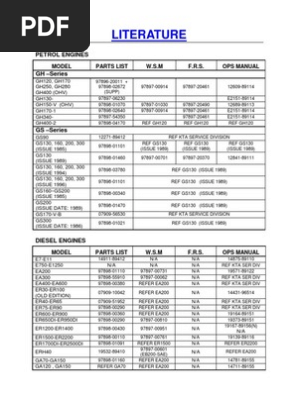 Kubota Engines Shop Manual Parts Catalog