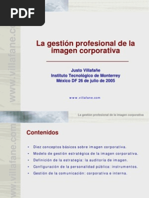 La gestion profesional de la imagen justo villafane pdf. La imagen es la traduccion sintetica que el publico se hace de todo cuanto recibe de los tres vectores inductores a traves de las diversas percepciones opiniones recibidas y experiencias propias vividas por los individuos. El contenido de. Una concepcion dinamica de la identidad. Dejate seducir por ohlibro pruebalo ya.