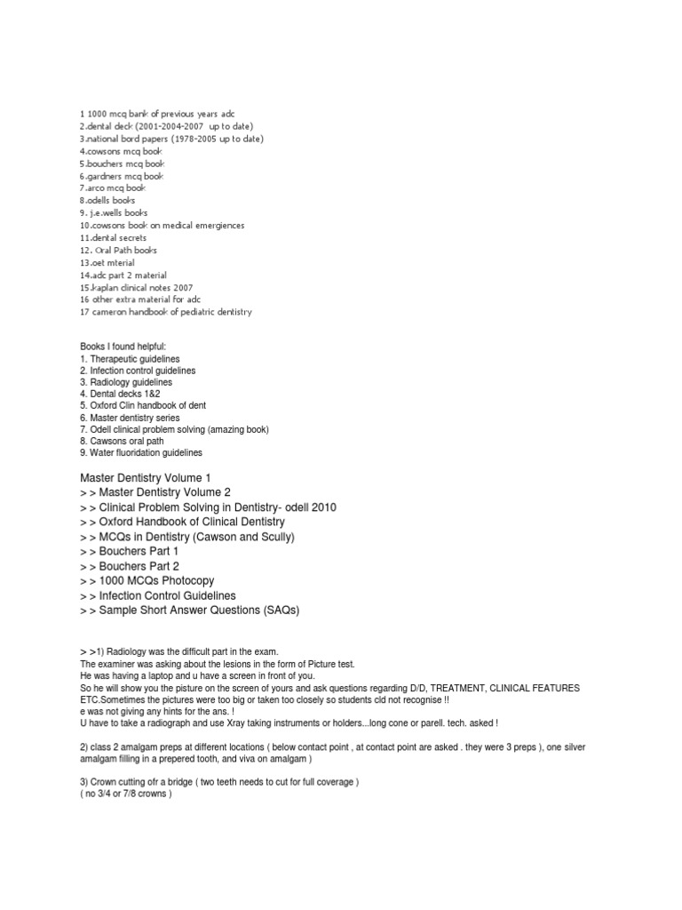 Mcq questions preliminary examination all of these questions are based on what people remembered after exams so it can not berelied on 100 but it is the only way to get an idea about the subjects matters and topics you would be asked about. Documents similar to mcq dentistrypdf. Risk assessment in oral health. Sleep disorders in pediatric dentistry.